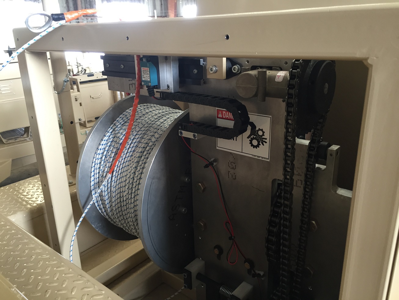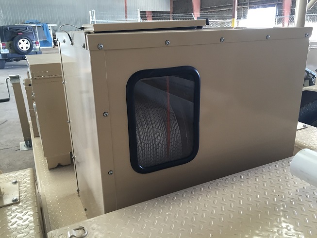 Aluminum 24 VDC or 120VAC Winch is for long tethers.